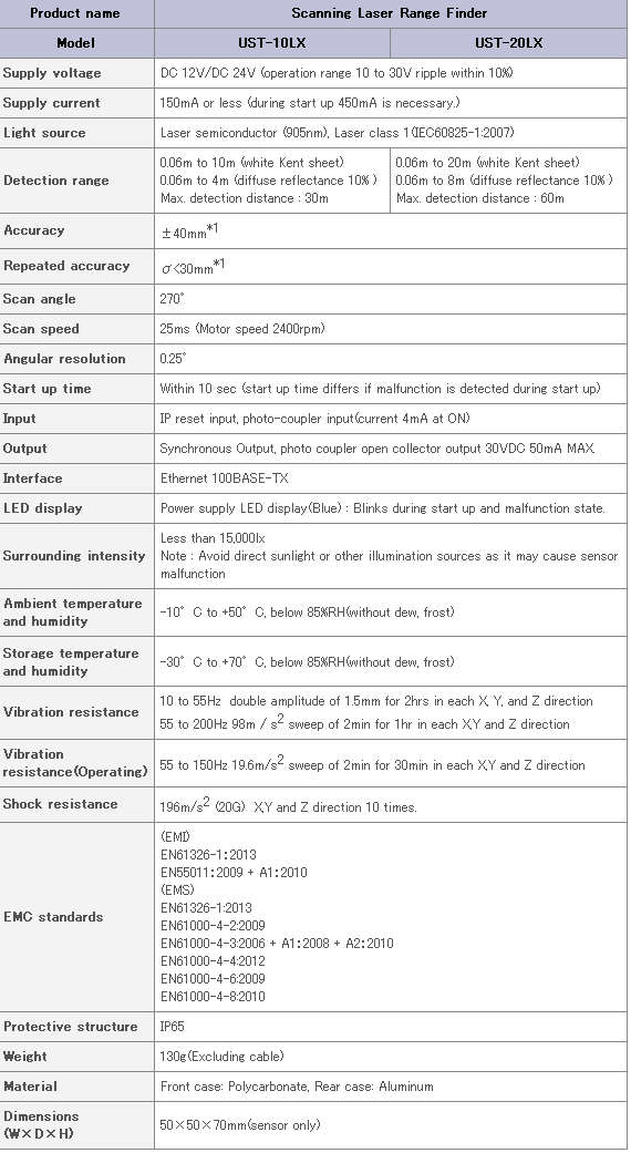 angle 270, Fast response 25msec, High angular resolution 0.25°